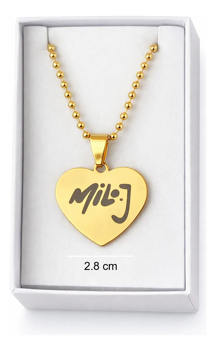 Collar Dije Milo J - Acero Dorado Grabado Laser