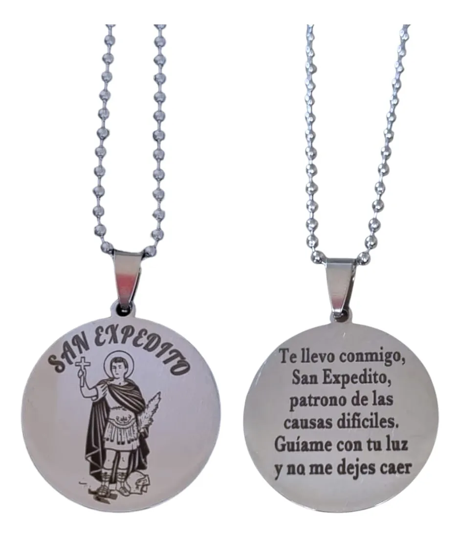 Collar Y Dije Acero Quirúrgico Grabado Láser San Expedito