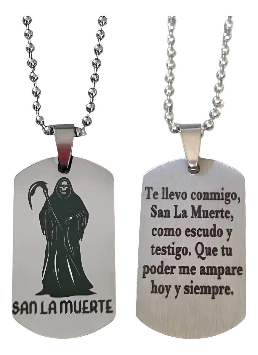 Collar Y Dije Acero Quirúrgico Grabado Láser San La Muerte
