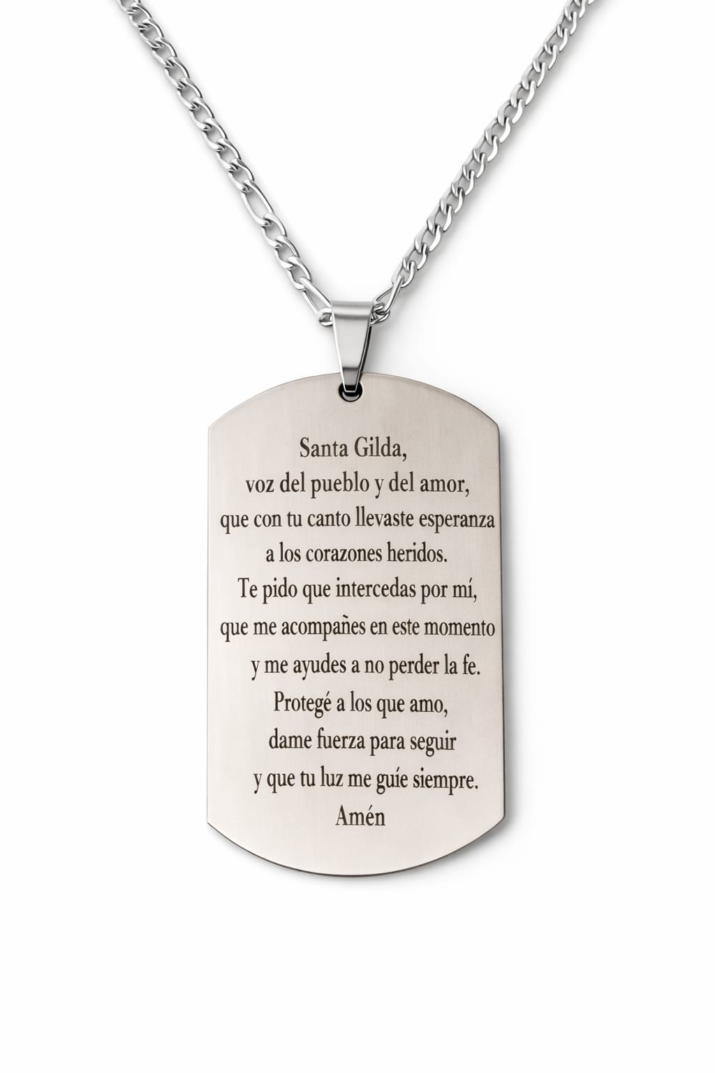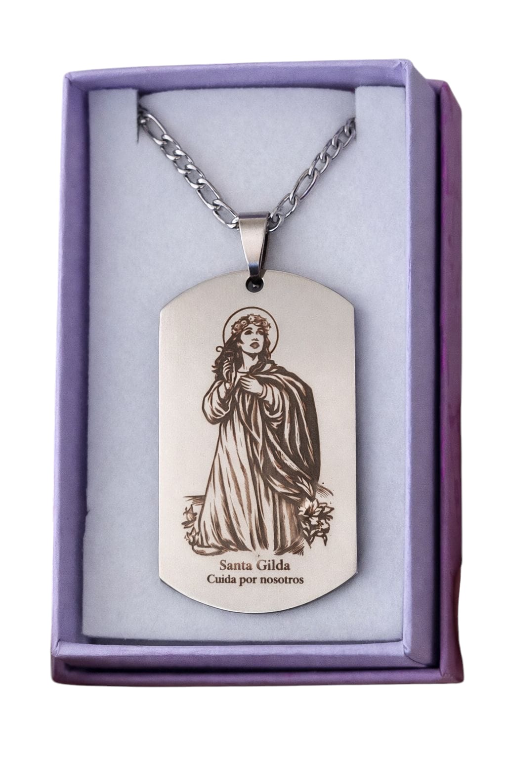 Collar Y Dije Acero Quirúrgico Grabado Láser Santa Gilda